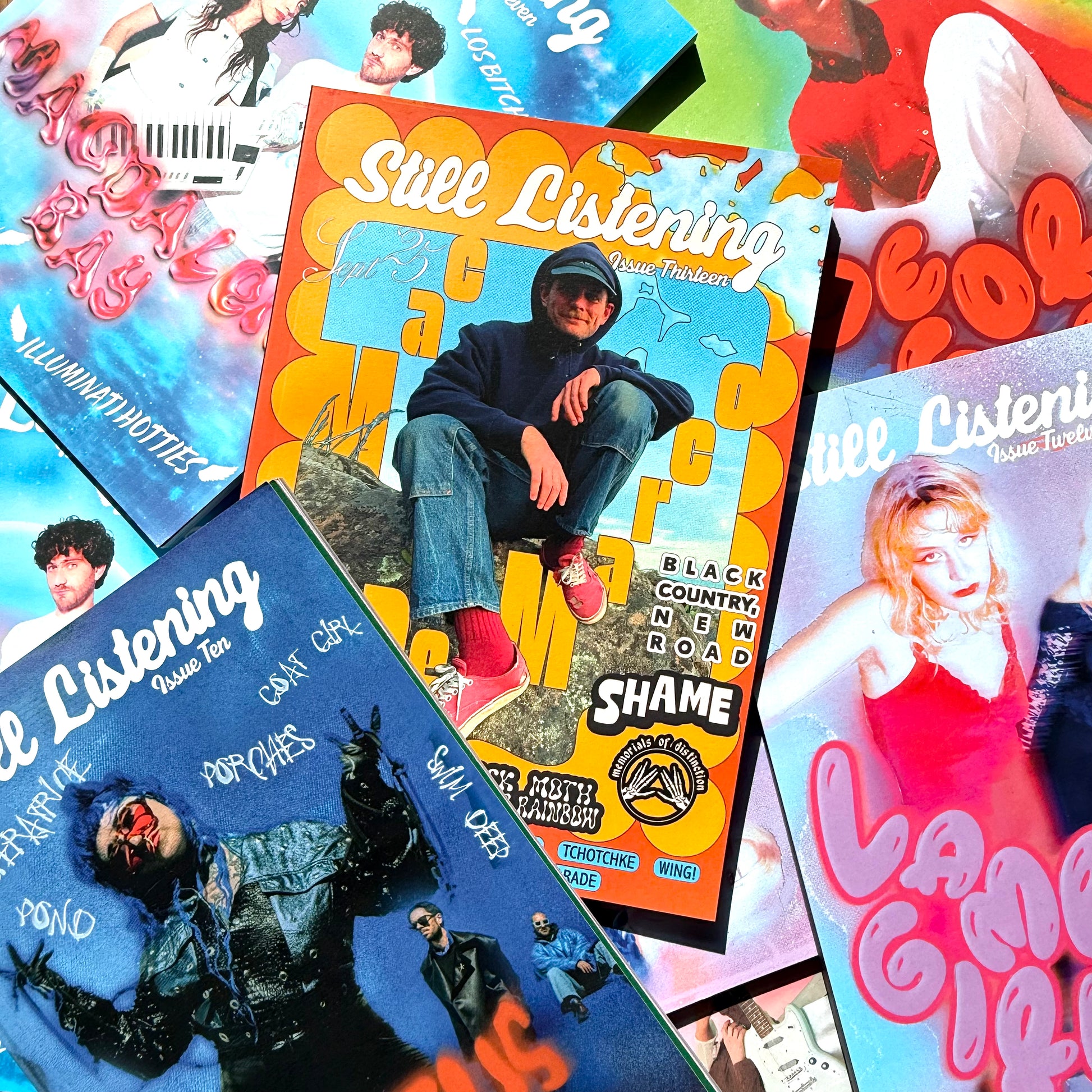 Still Listening is an independent music magazine dedicated to uncovering the most exciting new voices alongside more established names. Each issue is carefully crafted by a small team of writers, designers and photographers who are deeply involved in the scenes they cover, offering long-form interviews, sharp features and thoughtful reviews. Twice a year we publish a full colour magazine you can hold, keep and return to, designed with care and made to last. Subscribing guarantees every issue delivered to your door at the best value while directly supporting the people who make it possible.